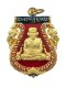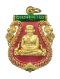 เหรียญเสมาฉลุ ยกองค์ลพ.ทวดหน้าเลื่อน-หลังพ่อท่านเขียว เนื้อบรอนซ์ชุบทองลงยาสีแดง